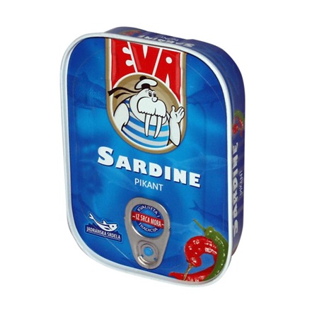 Stroj puni konzerve s ribama u kartonske zbirne kutije. Istovremeno se pune dvije kartonske kutije. Radnici na početku trake sortiraju dobre konzerve,...