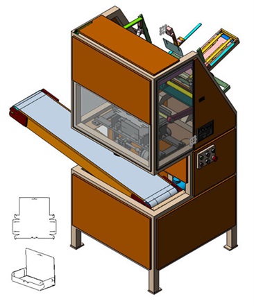 MKS-90 machine is designed for bottom and lid forming of ''Bombonijera'' type boxes from pre-prepared cardboard blanks. Delivered along with the machi...