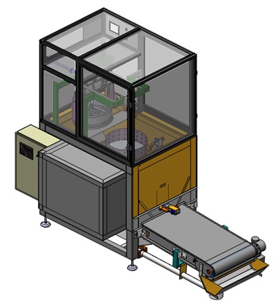Uređaj služi za preuzimanje grupe napunjenih kutija od 4 komada, njihovo zakretanje i pojedinačno prebacivanje na transportnu traku. Nakon određenog b...
