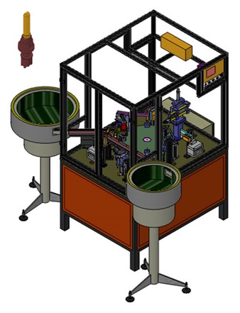 USK automat služi za sastavljanje kovane osovine i krivulje. Sastavni elementi se rotacionim i linearnim vibratorima dovode do okretnog stola. Krivulj...